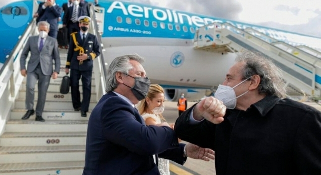 El Presidente partirá a las 17 de este lunes desde el aeropuerto de Ezeiza en un vuelo charter de Aerolíneas Argentinas, acompañado por el canciller Santiago Cafiero; la secretaria de Relaciones Económicas Internacionales de la Cancillería, Cecilia Todesca; y la portavoz Gabriela Cerruti, como parte de la comitiva confirmada hasta el momento.