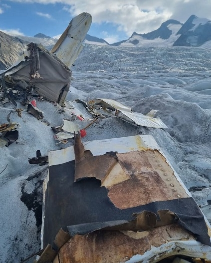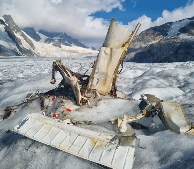 Los restos de un avión que se estrelló en los Alpes suizos en 1968 han quedado al descubierto debido al deshielo del glaciar donde se produjo el siniestro.