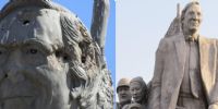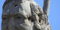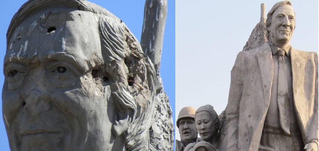 La escultura muestra marcas sobre la cara que parecen ser disparos de armas de fuego.