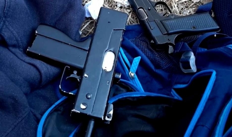 Al requisar la mochila, los agentes encontraron en su interior una ametralladora tipo UZI sin numeración, mientras que en un carro de barrendero hallaron una pistola calibre 9 milímetros sin balas y un cargador de UZI con 20 cartuchos.