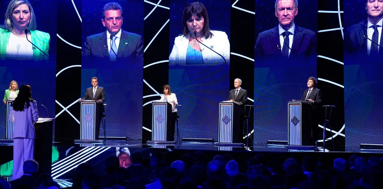 Los candidatos a presidente de todos los partidos políticos se vieron las caras en el primer debate presidencial que tuvo lugar en Santiago del Estero. Dividido en tres ejes temáticos (Economía, Educación, Derechos Humanos y Convivencia Democrática), Sergio Massa, de Unión por la Patria; Javier Milei, de La Libertad Avanza; Patricia Bullrich, de Juntos por el Cambio; Myriam Bregman, del FIT, y Juan Schiaretti, de Hacemos por nuestro País, discutieron durante 90 minutos y lo volverán a hacer el domingo que viene en la facultad de Derecho de la UBA. El tono del debate fue controlado y previsible. No hubo grandes sorpresas ni golpes de efecto y el ministro de Economía fue el más apuntado, seguido por Javier Milei. "A la urna no vayas con bronca ni con miedo, andá con esperanza", finalizó Massa.