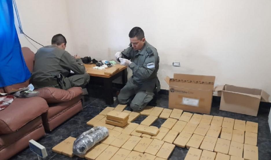 Allí se secuestraron más de 122 kilos de marihuana y cogollos de marihuana, un kilo de cocaína, 212 gramos de pasta base, cuatro balanzas de precisión e industrial, un arma de fuego, rodados, 2.247.500 pesos argentinos y demás elementos de interés para la causa.