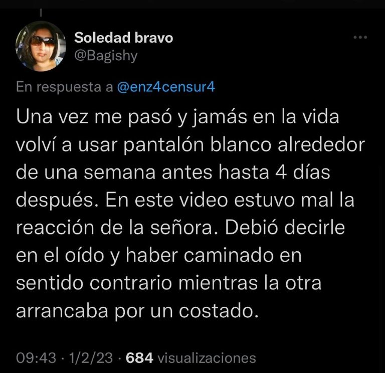 Y como era de esperar, inmediatamente las redes explotaron con miles de mensajes y testimonios tanto de mujeres y varones. Entre los comentarios se podía leer "Ay, pobrecita" o "Me muero de vergüenza si me pasa eso", entre otros.