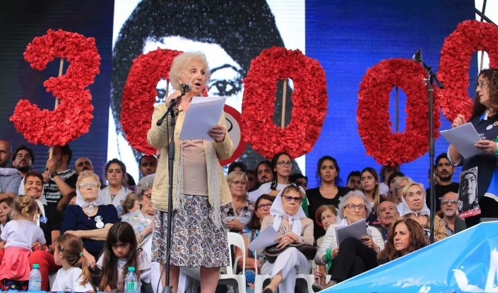La presidenta de Abuelas de la Plaza de Mayo, Estela de Carlotto, estará en el acto central por el Día de la Memoria frente a la Casa Rosada, donde esta tarde concentrarán organizaciones de derechos humanos, sociales y militantes.