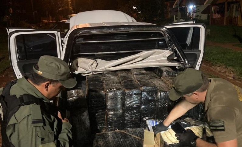 Con apoyo de integrantes de la Sección Núcleo del mismo Escuadrón; las Unidades de Procedimientos Judiciales y Delitos Complejos Eldorado, de Reunión de Información “IGUAZÚ”; y los escuadrones 11 “San Ignacio”, 12 “Bernardo de Irigoyen”, y el 49 “San Vicente”, los funcionarios llevaron a cabo un seguimiento controlado hasta el barrio Los Lapachos, donde interceptaron el vehículo, lo detuvieron y constataron la presencia de 1.374 paquetes con una sustancia amarronada.
