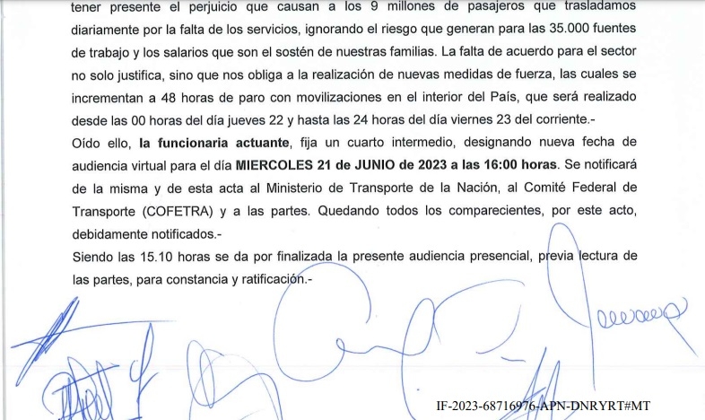 No obstante, el Ministerio de Trabajo fijó una nueva audiencia para el día 21 de junio, con el propósito de intentar resolver el conflicto y evitar el nuevo paro.