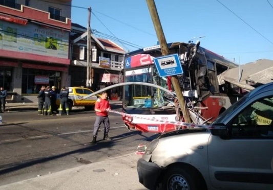 Fue cuando el colectivo iba a cruzar la calle Coronel D'Elía. Allí, perdió el rumbo y enfiló directamente hacia una de las veredas. Embistió a una camioneta que estaba estacionada y también un puesto de diarios. Además, colisionó contra un par de postes del alumbrado público. Todo quedó registrado por las cámaras de seguridad del Municipio.