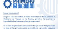 “Una parte del sector empresario -plantado sobre la depresión real del salario producida durante los sucesos extraordinarios ´macrismo-pandemia´- pretende perpetuar un proceso de acumulación donde la realidad social, política y económica nacional se desacople del destino de sus empresas y los bajos salarios constituyan el secreto a voces del aumento de sus riquezas”, denunció el gremio en un comunicado.
