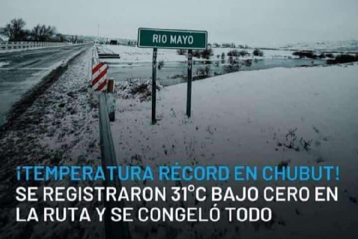 “Nuestra gente ha estado recorriendo la ruta desde muy temprano y ha registrado -31°C en la zona cercana a Río Mayo, a lo largo de la ruta nacional 40?, explicó. Además, Aldo Sánchez, un pronosticador local, indicó a ADNSUR, que en esa zona “No existe un registro oficial de temperaturas”. Pero en Perito Moreno, que queda cerca de esa localidad, se han llegado a registrar -22°C.