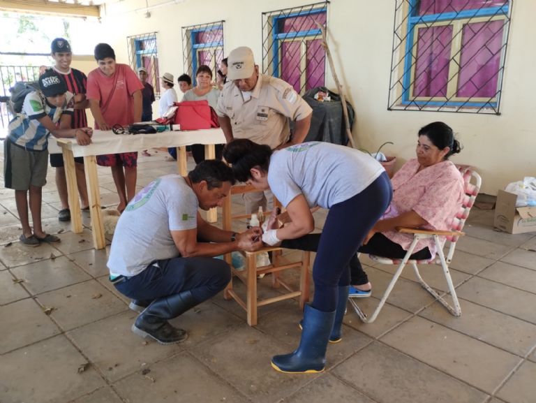 También, y en coordinación con personal de la Secretaría de Desarrollo Humano Municipal, el Ejército Argentino y Bomberos Voluntarios de Goya, miembros de la Institución trabajaron en los parajes Batel y Punta Mora y entregaron alimentos, medicamentos y ofrecieron atención médica.