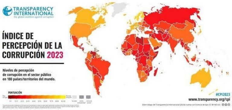 “Argentina se hunde en el fracaso de la lucha anticorrupción y culmina el 2023 con otro aplazo, retrocediendo un punto más en su score (37/100) respecto del 2022, a la vez que retrocede 4 lugares en el ranking global de Transparencia Internacional (TI) pasando del puesto 94° al 98° entre 180 países, compartiendo puntaje con Albania, Bielorrusia, Etiopía, Gambia y Zambia”, sostiene Bermolén.