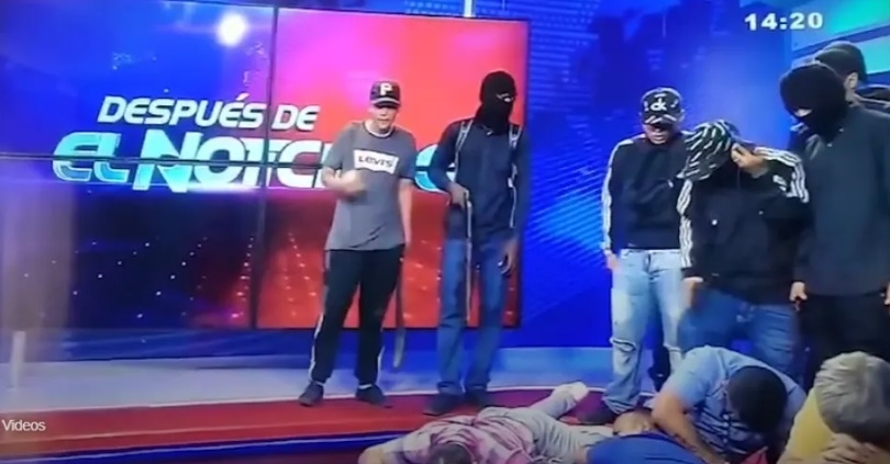 Pasadas las 14 (las 16 de Argentina), un grupo de delincuentes armados y con los rostros cubiertos entró a los estudios y exigieron que se les colocaran micrófonos.
