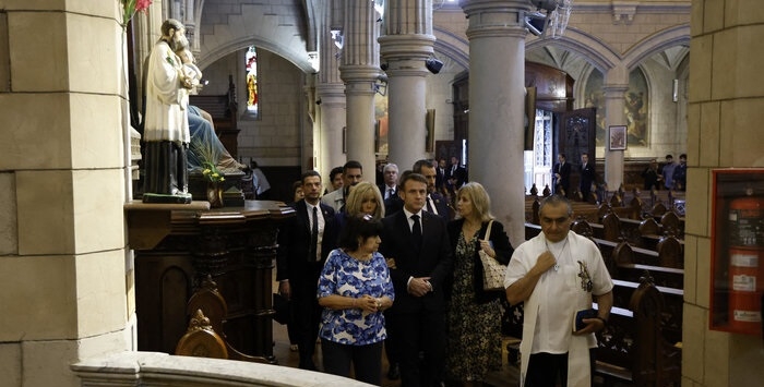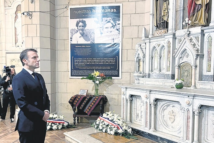“Es importante la presencia de Macron para hacer memoria y rendir homenaje a los mártires de la dictadura militar. Su presencia es muy significativa aquí en la Iglesia de la Santa Cruz”, dice el dirigente del movimiento de derechos humanos antes de dejar la parroquia.