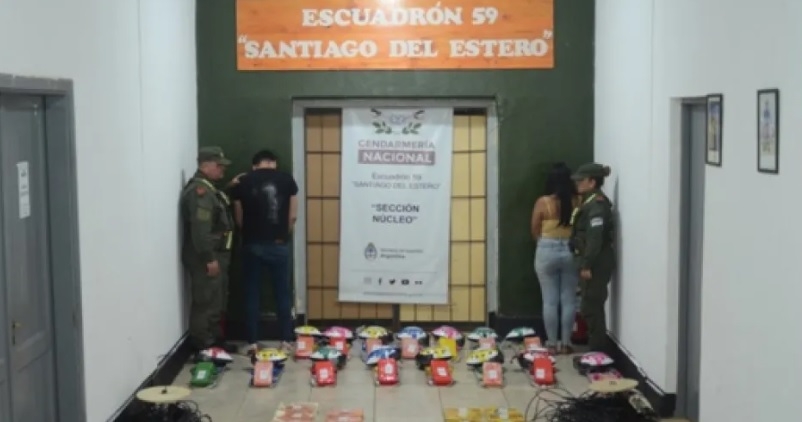 Mientras tanto, los gendarmes separaron de las patinetas, cascos y cables cerca de 40 paquetes rectangulares: De la prueba de campo realizada, resultó positivo para cocaína, arrojando un total de 33, 669 kilos.
