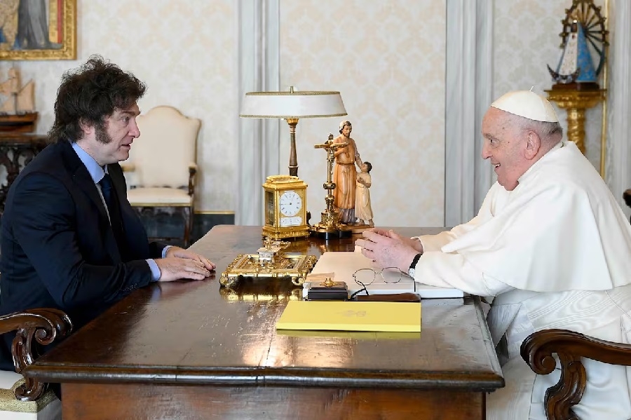 Javier Milei se reunió este lunes, en el Vaticano con el Papa. El encuentro privado duró una hora y fue el segundo contacto entre el Presidente con Francisco, quienes el domingo habían intercambiado saludos en la basílica de San Pedro en el marco de la ceremonia de canonización de Mama Antula.