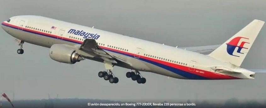 El vuelo MH370 desapareció mientras cubría la ruta entre Kuala Lumpur y Beijing, el 8 de marzo de 2014. La aeronave, un Boeing 777-200ER, perdió contacto con el control de tráfico aéreo cerca de la frontera entre el espacio aéreo vietnamita y malayo. A bordo viajaban 239 personas.