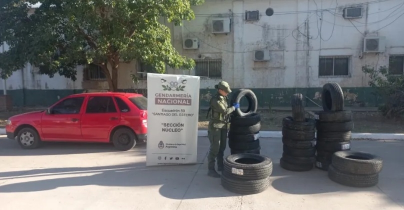 En horas de la tarde, los gendarmes realizaban un control de rutina, cuando advirtieron que se aproximaba un Volkswagen Gol de color rojo con dos ocupantes. Al detener la marcha del rodado, advirtieron a simple vista que en la parte trasera llevaban numerosos neumáticos de diferentes tamaños.
