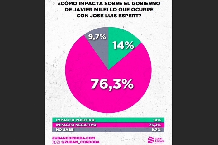 Un estudio nacional de la consultora Zuban Córdoba reveló que más del 76% de los argentinos considera que el caso Espert impacta de manera negativa en la imagen y la credibilidad del presidente Javier Milei.