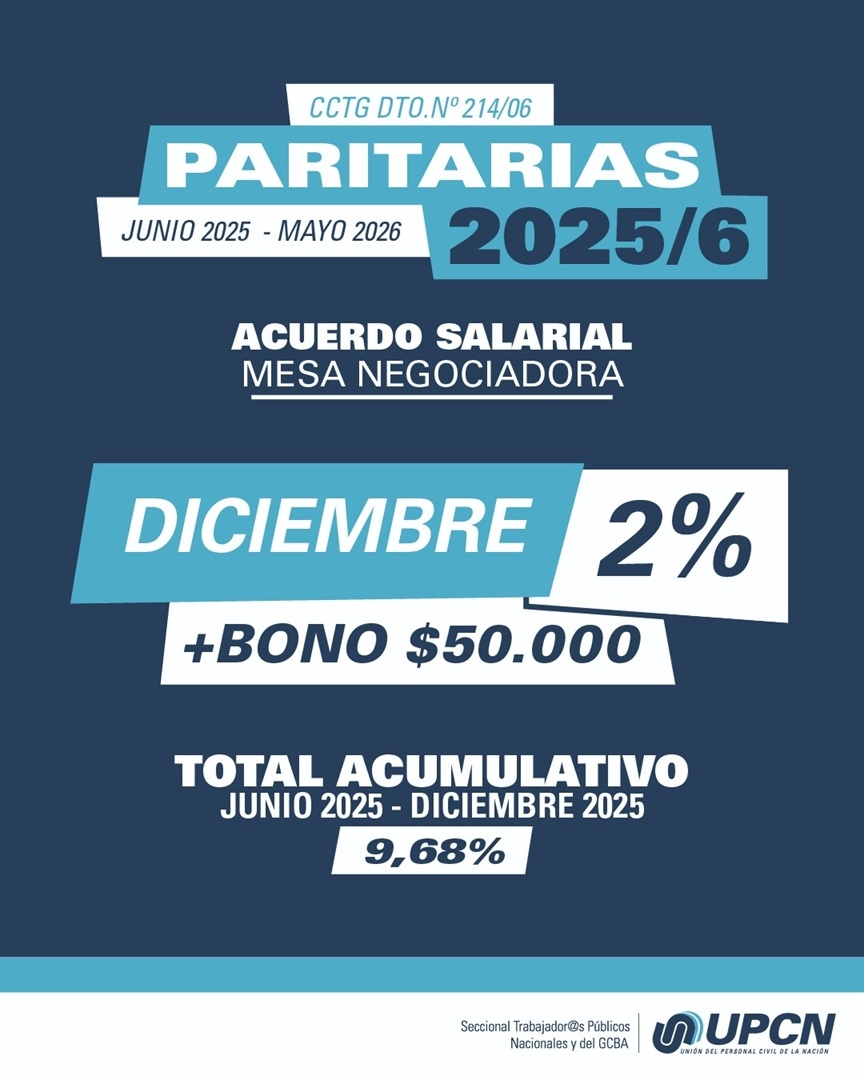 Vale destacar que el período paritario de los estatales comenzó en junio pasado, acumulando en ese tramo un 9,68%, según confirmó UPCN.