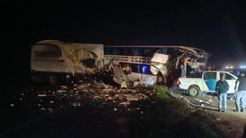 El hecho ocurrió durante las primeras horas del día y, según la primera información, el micro iba por el carril adecuado y quien se cruzó fue el camión de gran porte.