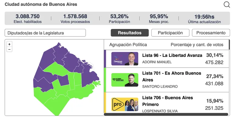 Con el 97,10% de las mesas escrutadas, La Libertad Avanza obtiene el primer lugar en las elecciones legislativas de la Ciudad Autónoma de Buenos Aires.