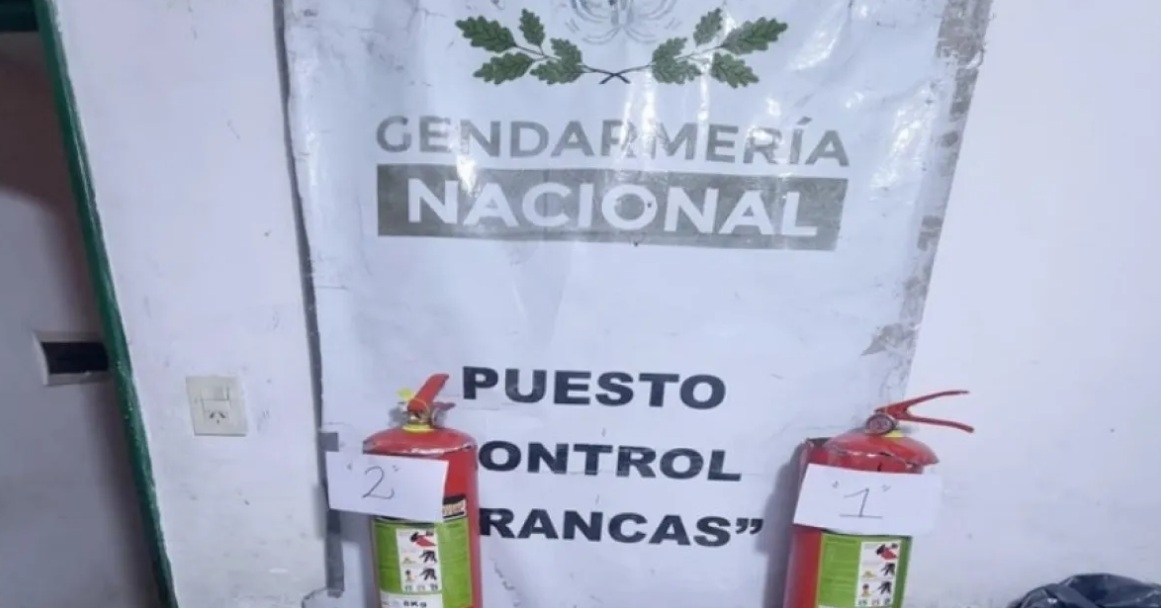 Al revisar el equipaje de los pasajeros, los gendarmes advirtieron la presencia de dos extintores cuyo peso resultaba excesivo y cuyas estructuras presentaban anomalías evidentes. Esta situación motivó una inspección más minuciosa con el apoyo de un can antinarcóticos, que marcó los objetos como sospechosos.