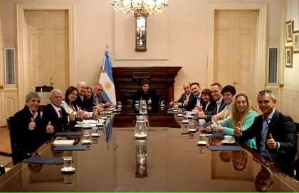 En principio, se prevé que estén presentes todos los ministros, la secretaria general de la Presidencia, Karina Milei; el secretario de Comunicación y Medios, Manuel Adorni; la secretaria de Legal y Técnica, María Ibarzábal Murphy; y el asesor presidencial, Santiago Caputo. A pesar de ser otro poder, ese grupo también está integrado por el presidente de la Cámara de Diputados, Martín Menem.