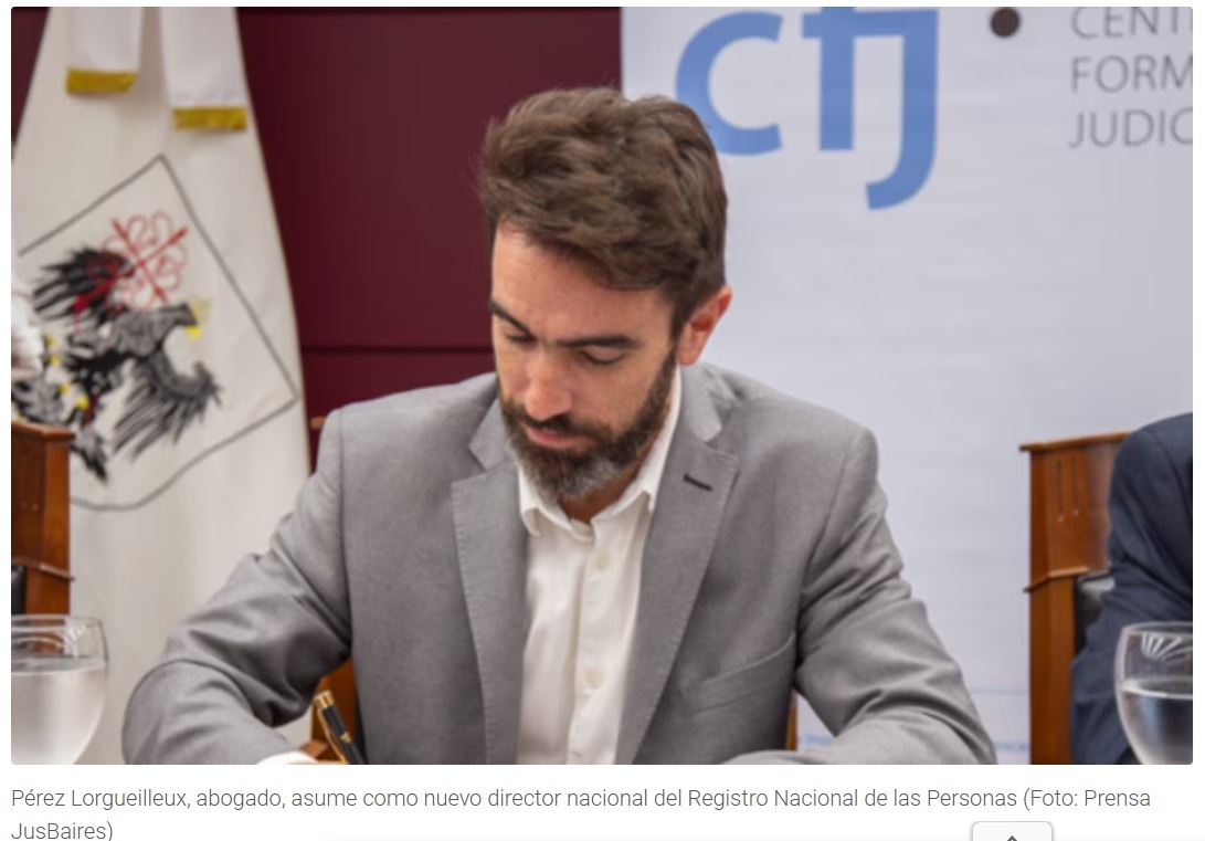 A partir del 1° de febrero, asumirá Pérez Lorgueilleux, abogado, como nuevo director nacional del Registro Nacional de las Personas. El organismo depende de la Secretaría de Interior del Ministerio del Interior y cumple tareas clave como la emisión y control de documentos de identidad, pasaportes y partidas de nacimiento.