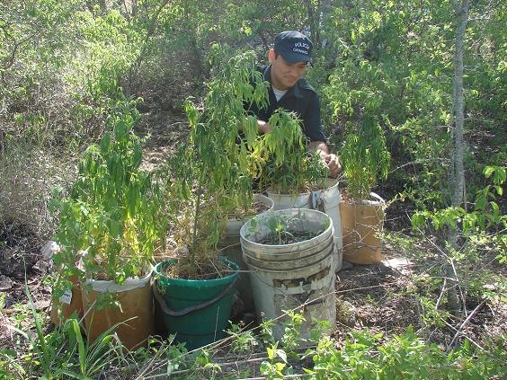 Producto de ello logran visualizar ocho (08) macetas con plantines, aparentemente de marihuana, los cuales se encontraban ubicados en cercanías a una vivienda precaria donde aparentemente habita una comunidad hippie.
