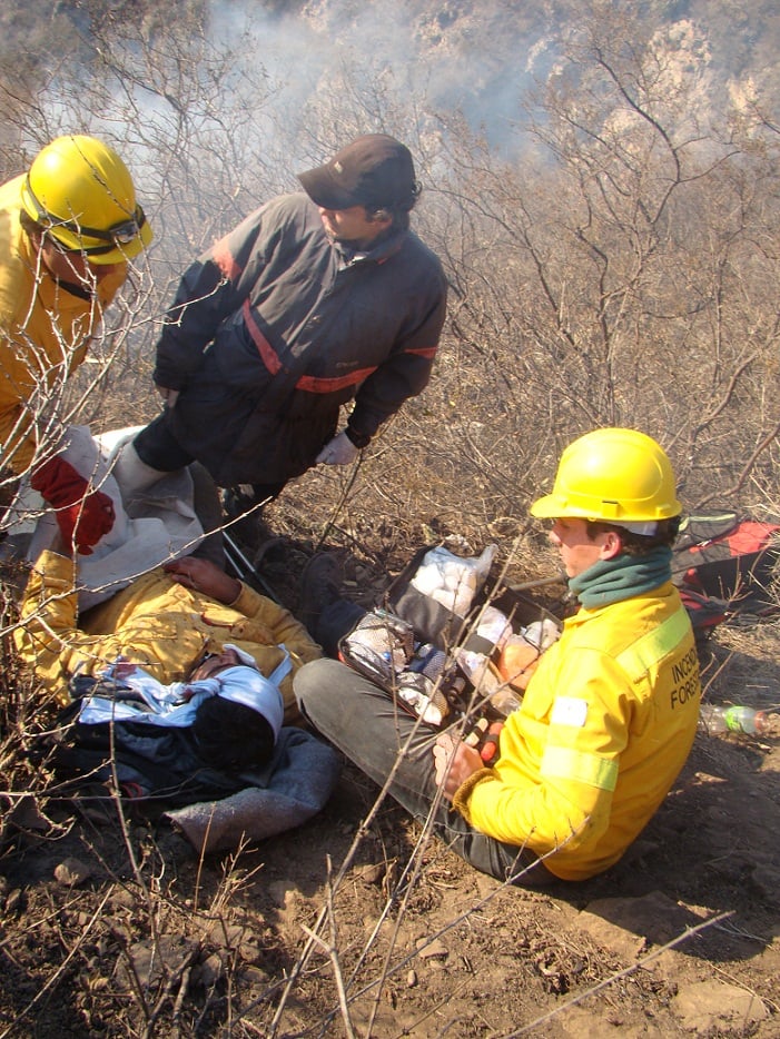 Alrededor de las 18.30 de ayer, mientras se sofocaba el incendio de la Cuesta del Portezuelo, Lucas Armando Segura, perteneciente a la Brigada de Incendios Forestales, cayó al precipicio. El hecho desafortunado le provocó un corte en el cuero cabelludo y excoriaciones en ambos miembros superiores. Por este motivo, debió ser trasladado al Hospital San Juan Bautista para recibir la atención necesaria.