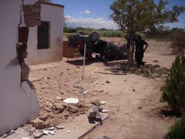 De no ser por un montículo de piedra que se encontraba en el lugar y desvió el automóvil, hubiesen chocado de frente con la vivienda lo que hubiese cambiado el destino de sus ocupantes como de las personas que se encontraban dentro de la casa. Nos comenta.