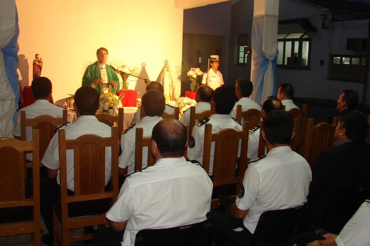 En la tarde de ayer, a las 20:00, se celebró una misa en el playón interno de la institución policial. Durante estas dos jornadas, los alumnos de la Escuela de Cadetes “Tte. Gral. Juan Domingo Perón” realizan una Guardia de Honor con uniforme de gala.