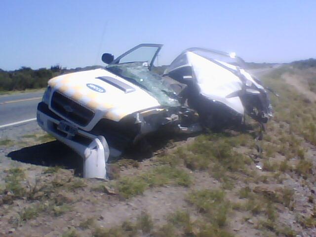 Una Chevrolet S-10 de color blanco, pegó contra el guarda raid de la ruta y dio varios tumbos, luego volcó.