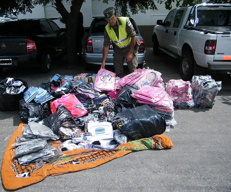 En el lugar, se controló una camioneta Chevrolet S-10 doble cabina, en la que viajaban cuatro personas que transportaban una gran cantidad de mercaderías de todo tipo (ropas, toallones, CDs, DVDs y zapatillas) que se encontraban en infracción a la ley 22.145 (Código Aduanero), y que representaban un avalúo cercano a los $40.000.