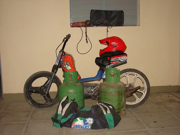 En el lugar, se secuestró un ciclomotor Zanella 50cc, un casco protector, dos garrafas de 10 Kg. cada una, un bolso de viaje, de color negro, un taladro eléctrico y una amoladora.