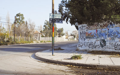 En esta esquina, frente a la cancha del Club Palazzo el carnicero fue salvajemente atacado por dos jóvenes que descendieron de un colectivo poco antes de las 8 de la mañana.