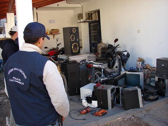 En la oportunidad secuestraron: dos Play Station II, una Moto Sierra, dos televisores de 21”, una Amoladora, una Desmalezadora, una Notebook, tres parlantes amplificador, una Bicicleta Playera, un microondas, un Freezer y un Equipo de Música.