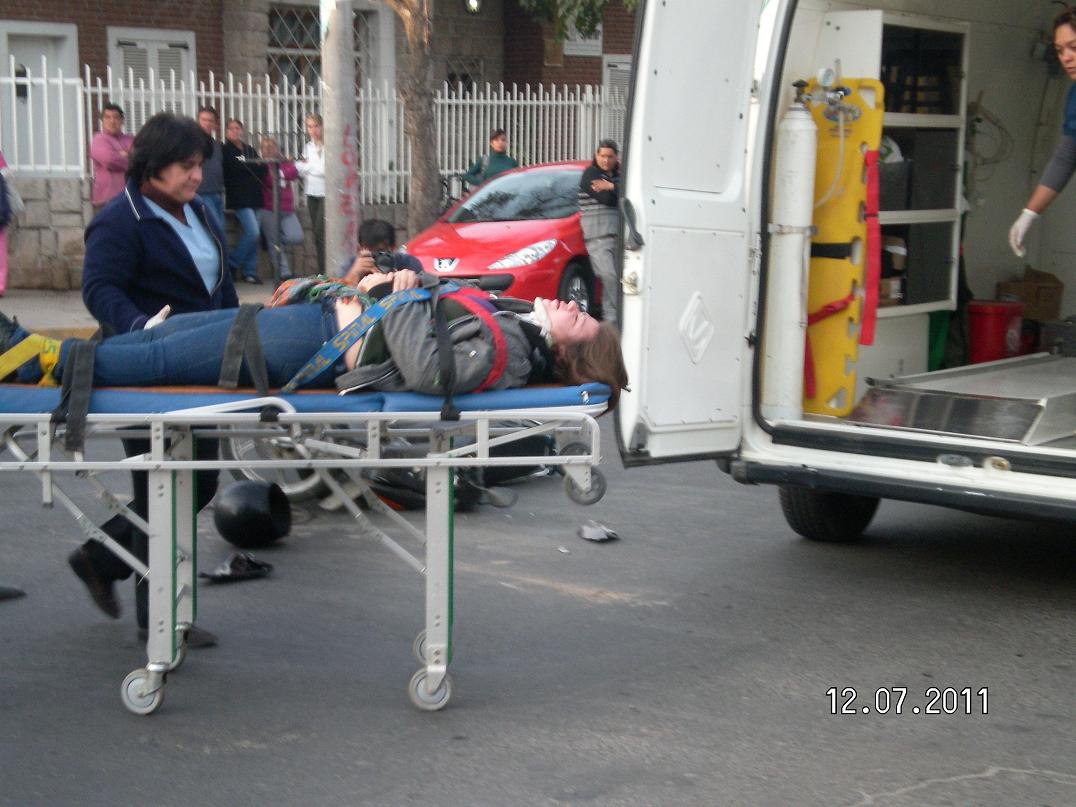 Según contaron ocasionales testigos, el automóvil, un Fiat Punto color verde agua, cruzaba la avenida, sin advertir que en ese momento venía una mujer en una motocicleta. A causa de la caída la motociclista quedó tirada en el piso hasta que llegó una ambulancia y se produjo su traslado.