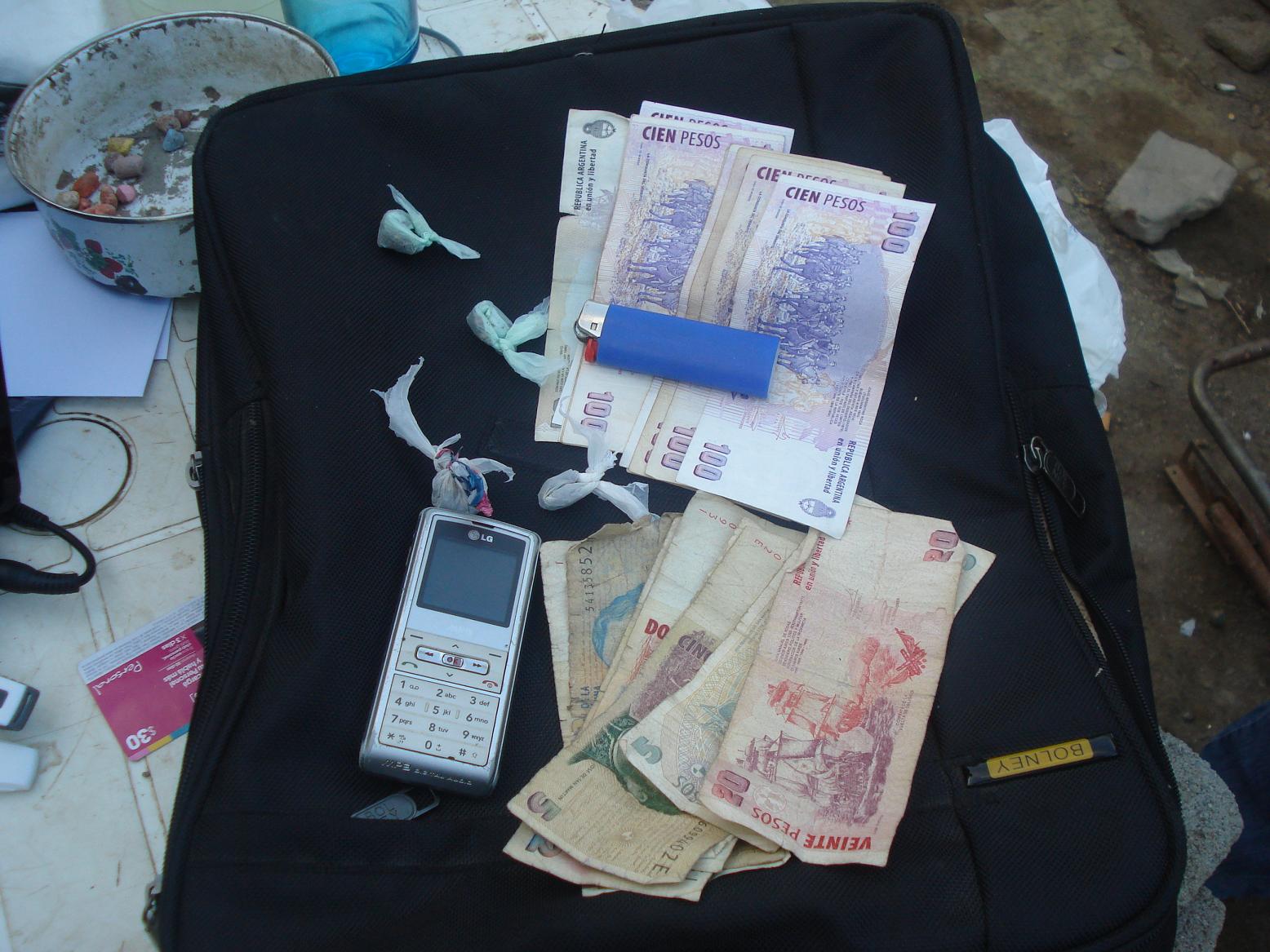 A las 18,15 de hoy, en Barrio Las Vías Este - Sumalao, Dpto. Valle Viejo, en un domicilio propiedad de una persona del sexo femenino, de 27 años de edad, personal Policial de la Dirección Drogas Peligrosas llevó a cabo un allanamiento, en donde procedió al secuestro de cuatro (4) envoltorios, conteniendo una sustancia tipo herbácea de color verde, dos (2) de los cuales se hallaban entre las prendas de vestir de la mujer y los restantes ocultos en la bajo mesada de la cocina, y dinero en efectivo discriminados en billetes de baja denominación.