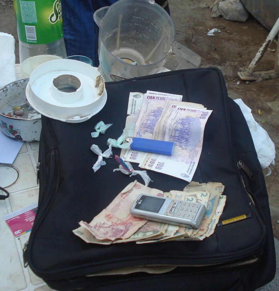 Al momento de realizar la prueba de campo frente a testigos civiles, el personal Policial obtuvo como resultado POSITIVO – MARIHUANA y POSITIVO COCAINA. En tanto que al seguir con la búsqueda, en un rincón del domicilio, el personal interviniente encontró oculta una licuadora, la que poseía restos y el olor característico de la Cannabis Sativa, lo que hace presumir que la misma era utilizada para picar la sustancia estupefaciente para luego proceder al armado de los cigarrillos, por lo que se procedió al secuestro de dicho electrodoméstico. Al realizar el pesaje correspondiente, arrojó como resultado: 80 grs. de marihuana y 40 grs. de cocaína.