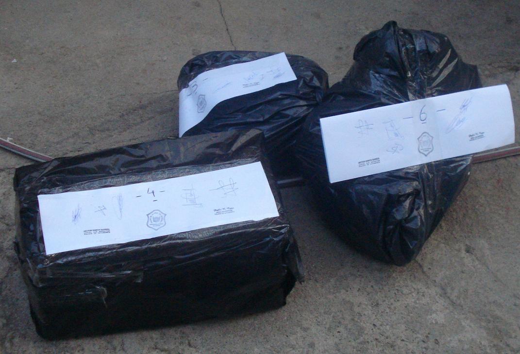 Mientras seguían cumplimentando la orden de allanamiento, encontraron ocultos en el interior de un parlante tres (3) trozos compactados en forma de panes de la misma sustancia y dos (2) envoltorios con una sustancia de color blanco.