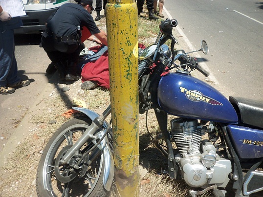 Por causas que se tratan de establecer, el motociclista subió al cantero e impactó contra un poste, lo cual le produjo la fuerte caída e impacto contra la cinta asfáltica. Falleció en el acto.