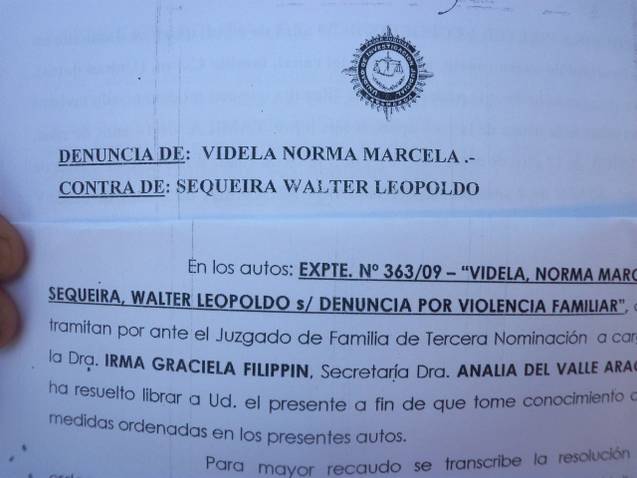 “He radicado denuncias en diferentes comisarías y sedes judiciales, sin conseguir respuesta favorable a mí pedido. La situación es incontrolable, mi ex pareja, de apellido Sequeira, aprovecha la ausencia de mi actual compañero (pareja), quien se encuentra cumpliendo una condena, para seguir molestándome”, dijo.