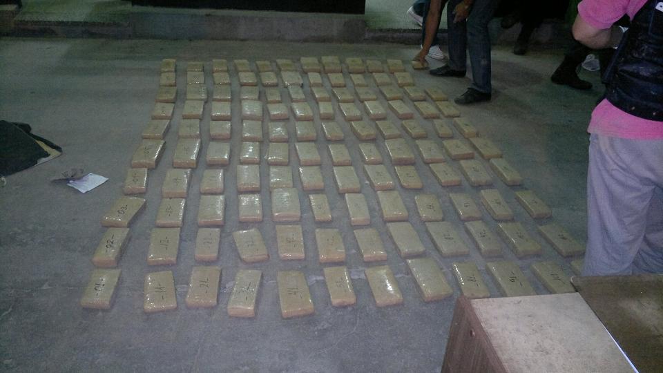 Tras revisar el Peugeot 106, el que estaba especialmente preparado para el transporte de droga, los uniformados encontraron 120 panes de marihuana de entre 500 y 900 gramos cada uno.