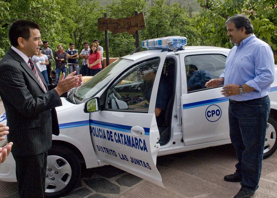 Los mencionados funcionarios provinciales, junto al titular de la comisaría de El Rodeo, Oficial Inspector Sergio Alejandro Mamaní, fueron los encargados de recibir la unidad, un moderno Chevrolet, modelo Prima 1.4, LS, tipo sedan, 4 puertas, 0 Km., equipado con radio, sirena, balizas y jaula de contención, que de inmediato pasó a disposición de las autoridades policiales de la jurisdicción. La flamante unidad fue adquirida por la Municipalidad de Las Juntas con aportes del Fondo de Desarrollo Municipal (FDM).