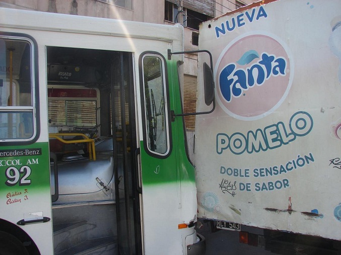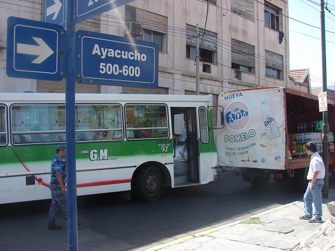 Esta mañana, a las 11 horas, en la esquina de las calles Ayacucho y Esquiú, frente al Casino Catamarca, un colectivo de la línea 202 -interno 92-, de la empresa GM, al mando de Cristian Lencina (37), colisionó con un camión repartidor de gaseosas (únicos datos) que estaba estacionado cerca de la bocacalle.