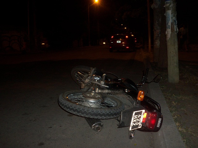 Ayer a las 20.30 horas, en calle Maipú norte, se produjo un accidente entre una moto Yamaha, patente 423 HXZ, conducida por Lucas Exequiel Bazán, de 23 años, quien alcanzó a rozar en la parte posterior, a un auto Ford Focus, patente 341 GGL, y caer a la cinta asfáltica.