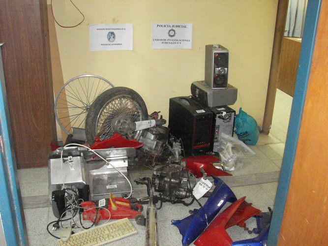 Como resultado de la materialización de estas medidas judiciales, se logró secuestrar una motocicleta Yamaha Criptón, la cual poseía pedido de secuestro, también un gato hidráulico, moto partes, una amoladora, una cortadora de fiambre, dos parlantes, dos computadoras de escritorio completas.
