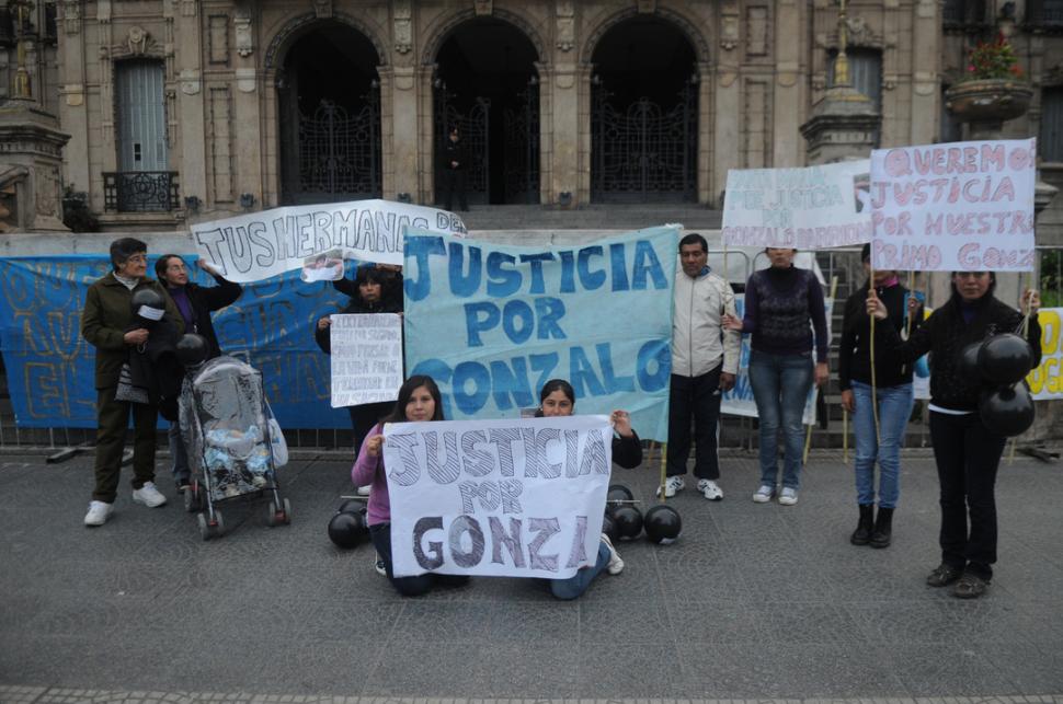 Como se sabe, el joven, oriundo de Santa María, fue asesinado por tres delincuentes que le robaron las zapatillas el 26 de abril en la calle Buenos Aires al 1.000. Con pancartas y globos negros recordaron a Gonzalo y reclamaron Justicia. Fuente: La Gaceta.