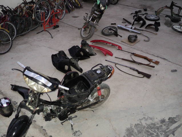 Las motocicletas recuperadas estaban desmanteladas, ya que al parecer eran tuneadas y pintadas para que no se las reconozca, “esto fue en el barrio San Pio y fueron detenidos dos menores, y al momento del operativo los uniformados encontraron en el techo de la vivienda como así también bajo el tanque de agua armas que supuestamente eran de estos menores, que hoy están a disposición de la fiscalía del Dr. Marcelo González”, informó el comisario a cargo de la zona Rodolfo Chaile.